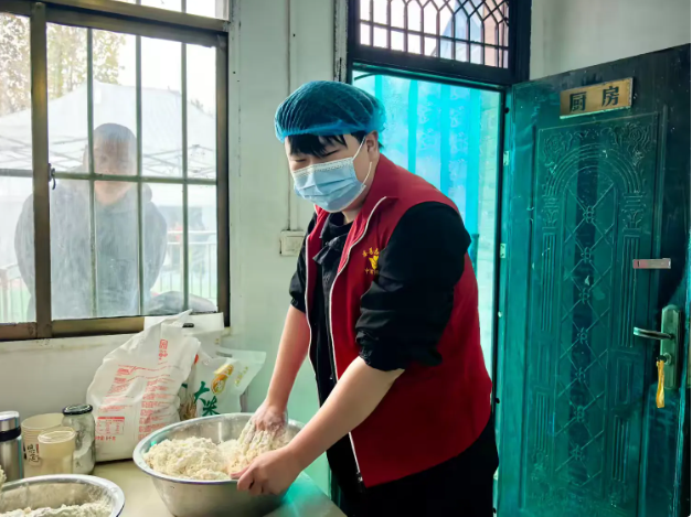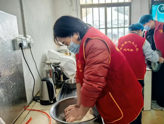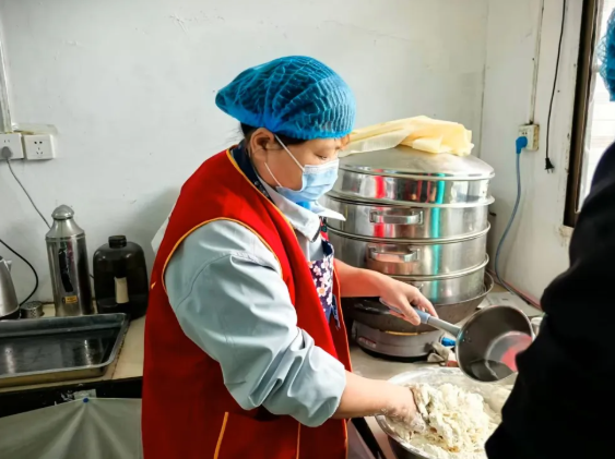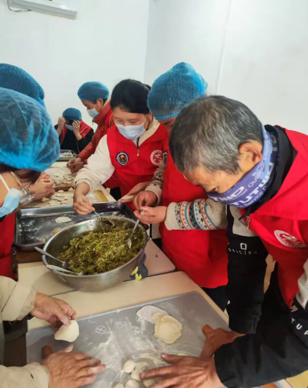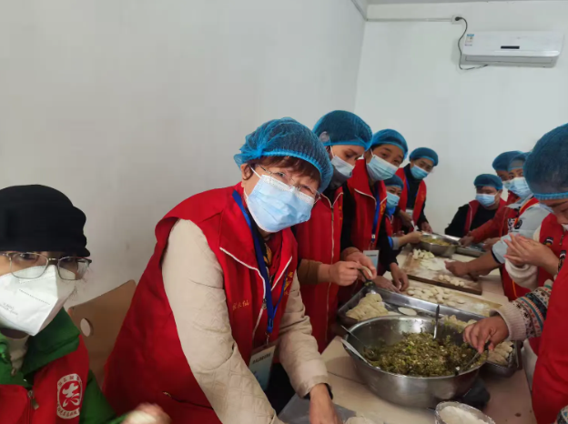 志愿者们放弃假日与家人团聚的时光,一大早就从西安各地赶来,在机构内分工协作包爱心饺子。
