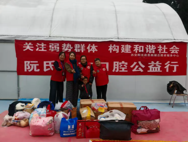 鑫缘爱心义工服务队、阮氏口腔有限公司、西安慈善先锋社区志愿者服务队,一行二十多人来到长安斗门街