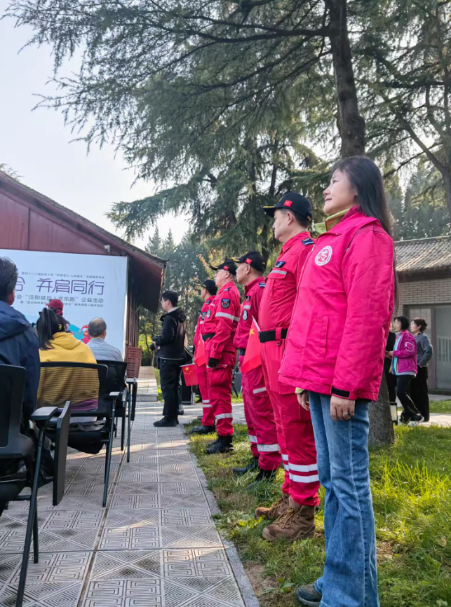 “西安市阳光应急救援志愿者服务中心”的志愿者们为活动保驾护航。