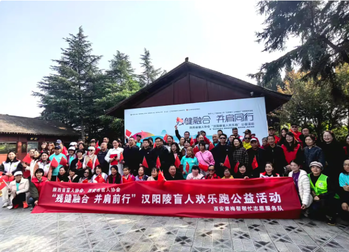 金秋十月,杏叶飘黄,10月28日,第42个国际盲人节当天,汉景帝阳陵博物院里暖意融融、活力涌动,一场以“残健融合并肩前行”为主题的“关爱视力 心系盲生”志愿服务活动在此进行,“西安市阳光应急救援志愿者服务中心”的志愿者们在活动中保驾护航。文化与体育、艺术与关爱交织成一曲欢快的乐章。