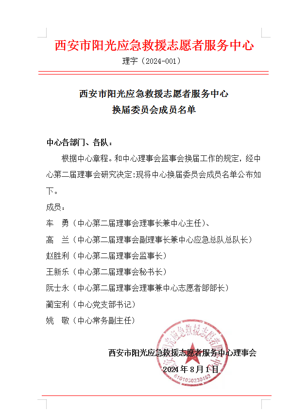 西安市阳光应急救援志愿者服务中心换届委员会成员名单